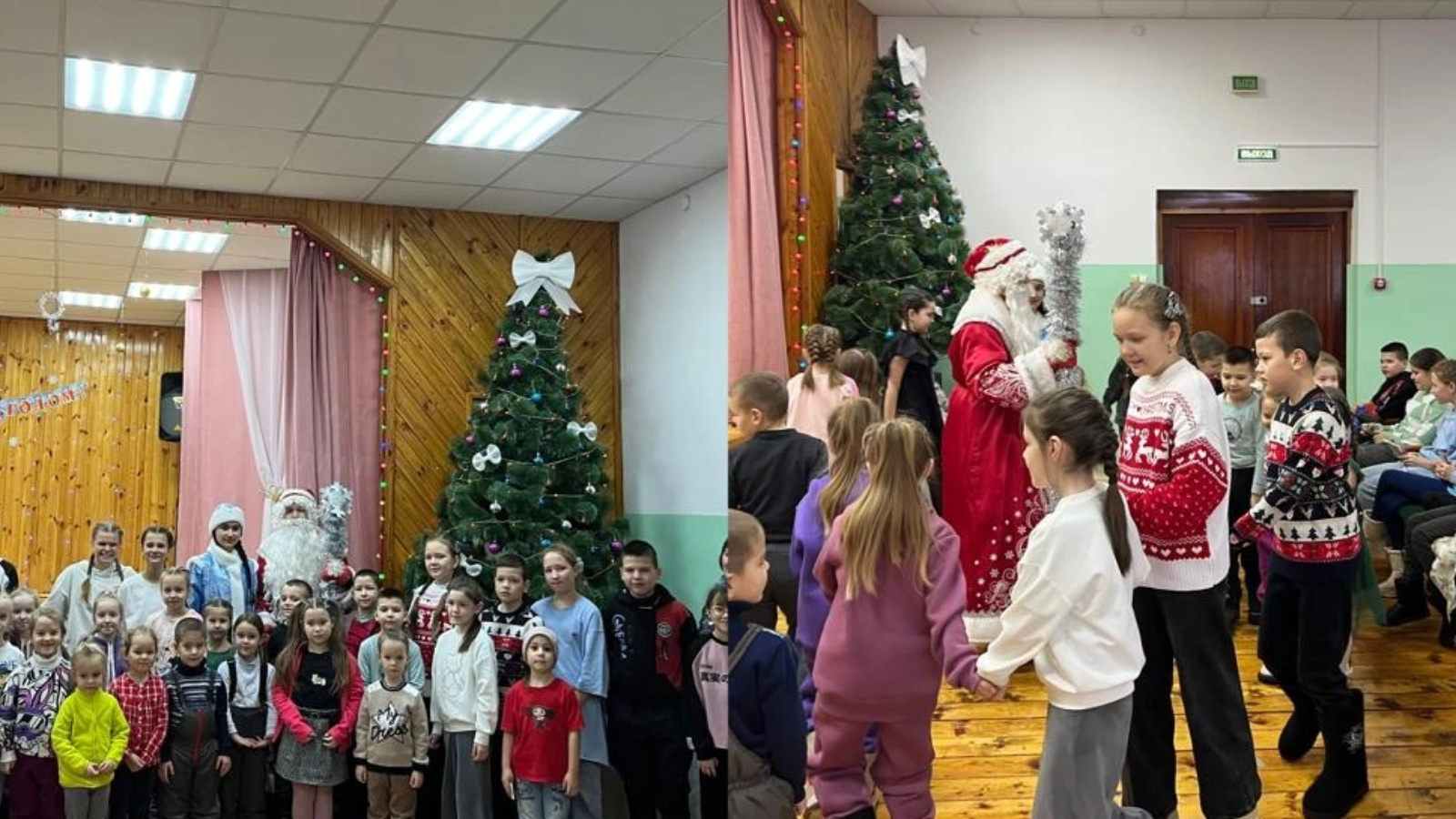 Дети с Дедом Морозом и Снегурочкой обошли вокруг елки,поиграли в разные игры,ответили на вопросы,проявили находчивость.