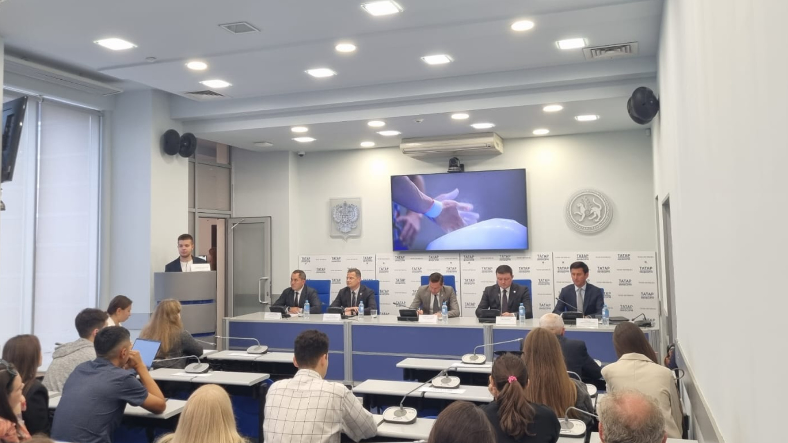 В пресс-конференции также приняли участие министр спорта РТ Владимир Леонов, генеральный директор АНО "Дирекция спортивных и социальных проектов" Максим Денисов, председатель Комитета физической культуры и спорта Исполкома г.Казани Линар Гарипов.