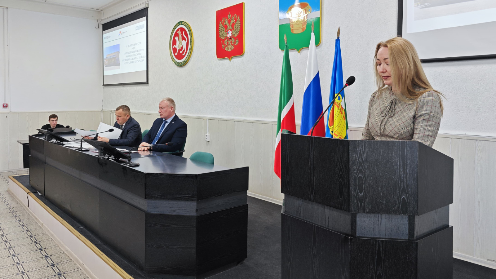 О работе Молодежного центра рассказала его руководитель Марина Елисеева. В МЦ работают молодежные объединения: Советы работающей и сельской молодежи, Студенческий педагогический трудовой отряд, Центр поддержки добровольческого движения «Жизнь», Молодежный парламент, «Волонтеры Победы», Молодежная ассамблея народов Татарстана, клуб молодых избирателей, фитнес для молодых мам, а также хореографические и вокальные студии. Охват творческими и молодежными объединениями составляет 1246 человек.