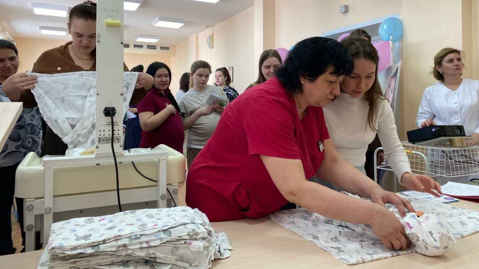 Беременные смогли задать вопросы профильным специалистам: акушерам и педиатрам. Приняли участие в мастер-классе по пеленанию и смогли применить полученные знания на практике.