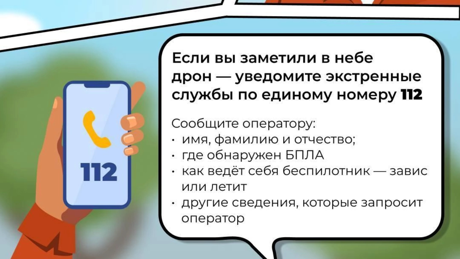 Если вы заметили в небе дрон, нужно как можно скорее уведомить об этом экстренные службы по единому номеру 112.