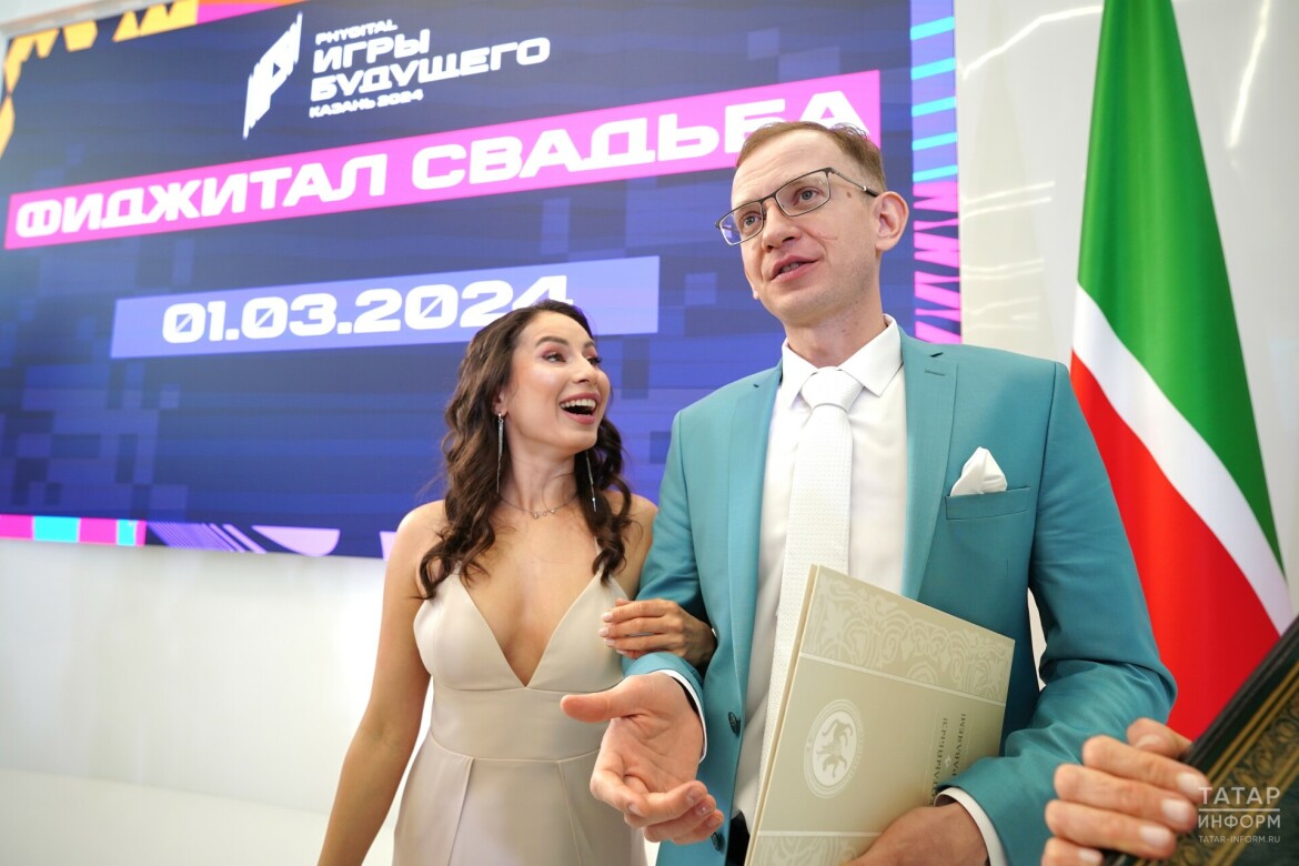 В «Казань Экспо» узами брака связали пару Егора и Елены Ореховых. Они с радостью поддержали идею провести свадьбу на площадке проведения «Игр будущего» – международных соревнований по фиджитал-дисциплинам.