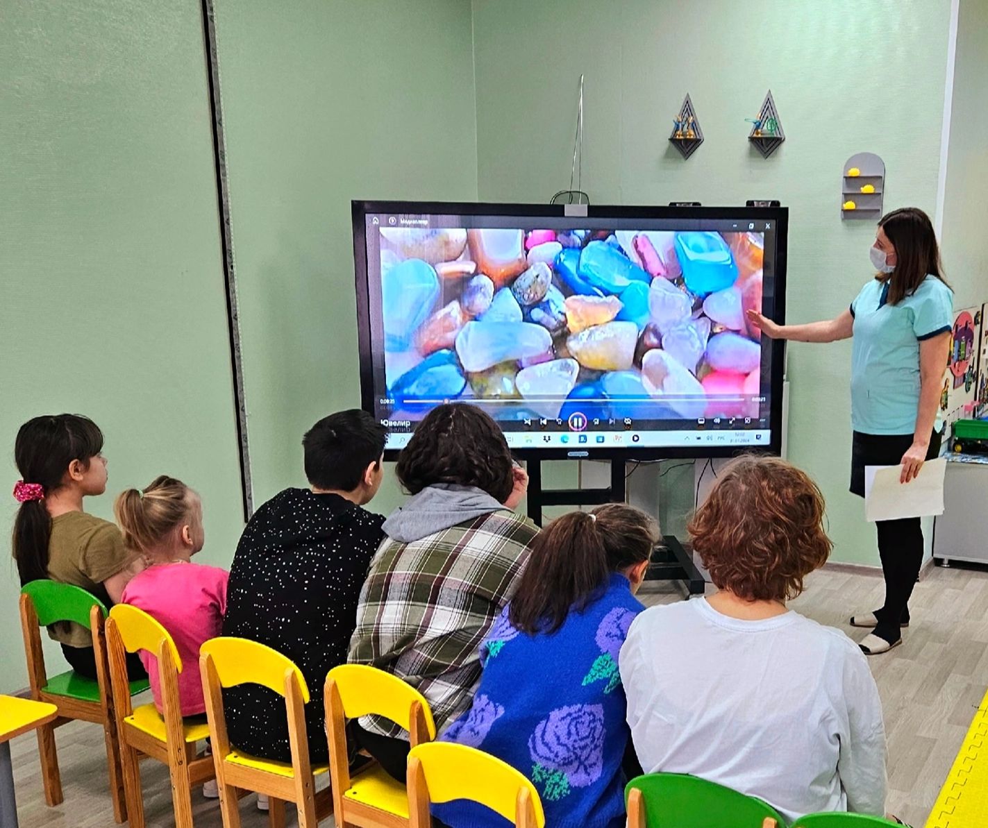 Воспитатель Лилия Кашапова познакомила детей с особенностями работы ювелира. С помощью презентации ребята узнали историю возникновения данной специальности в обществе, увидели какие инструменты и приспособления используют мастера в своей работе. Далее воспитанники совершили виртуальное путешествие в мир драгоценных камней, которые применяются в ювелирных изделиях. Настоящим открытием для реабилитантов стало, что камни не только украшают человека, но и обладают лечебными свойствами.